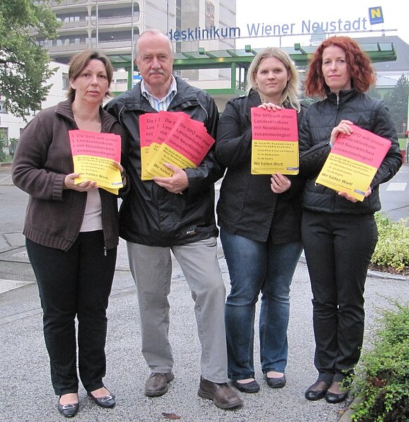 Am Donnerstag wurden die Bediensteten des Landesklinikums Wiener Neustadt über die SPÖ-Spitalszusammenlegungspläne informiert. SPÖ-Nationalrat Wittmann hatte ja gefordert die Landesklinken Wiener Neustadt und Neunkirchen zusammenzulegen. Nachdem in beiden Fällen eine Standortgarantien abgegeben wurde und diese Pläne negative Auswirkungen auf die Patientinnen und Patienten, auf die Bediensteten und auch auf die ganze Region hätten, kommen solche Vorschläge für die Volkspartei nicht in Frage. Heute Früh wurden bei einer Verteilaktion zum Schichtwechsel die Bediensteten des Landesklinikums über die fatalen SPÖ-Pläne informiert.