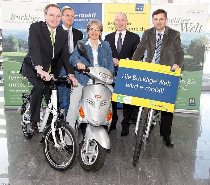 Elektromobilität ist eines der großen Zukunftsthemen. Während es in den meisten österreichischen Bundesländern jedoch vor allem um spezielle Einzelprojekte geht, wurden in Niederösterreich die Rahmenbedingungen für eine erfolgreiche Gesamtentwicklung geschaffen. Ein Schwerpunkt liegt dabei auf dem systematischen Aufbau von Regionen zum Thema E-Mobilität. „Hier setzt auch das Projekt „e-mobil Bucklige Welt“ an“, erläutert Wirtschaftslandesrätin Dr. Petra Bohuslav. „Es schafft eine enge Verbindung von Tourismus, Nachhaltigkeit und Regionaler Wirtschaft, die allen zugute kommt. Während im ersten Jahr die touristischen Angebote im Vordergrund stehen, wird der Fokus im zweiten Jahr auf den Bereichen Alltagsmobilität und gewerbliche Mobilität liegen.“ Umweltlandesrat Dr. Stephan Pernkopf betont: „Elektromobilität ist effizient, Klima schonend, schafft Arbeitsplätze und sichert die Lebensqualität künftiger Generationen. Zusätzlich bietet diese innovative Technologie aber auch neue Chancen für den ländlichen Raum. Unser Ziel ist es daher, in Niederösterreich ein breites Bewusstsein für Elektromobilität und eine entsprechende Wertschöpfung zu schaffen. Dieses Projekt trägt ganz wesentlich dazu bei.“ „e-mobil Bucklige Welt“ verknüpft ein umfassendes und vor allem auch leistbares regionales Angebot an E-Fahrzeugen (gesichert durch ein stark regionales Betreibermodell) mit den in der Region vorhandenen erneuerbaren Energien – ein Punkt, der für den Lichtenegger Bügermeister LAbg. Ing. Franz Rennhofer von besonderer Bedeutung ist: „Das gesamte Projekt ist in ein großangelegtes, regionales Energiekonzept eingebettet. Daher soll unter Einbindung der Gemeinden auch ein Tankstellennetz etabliert werden und es ist unser erklärtes Ziel, den Strombedarf durch Ökostromanlagen zu decken.“ Eine weitere Grundlage für den Erfolg des Projekts ist die enge Kooperation mit der regionalen Wirtschaft. Norbert Luckerbauer, Chef des Mobilitätscenter Luckerbauer und eine der wesentlichen unternehmerischen Säulen dieses Projekts, setzt auch in seinem Betrieb auf diese neue Technologie: „E-Mobilität wird immer mehr an Bedeutung gewinnen. Wer sich jetzt in diesem Bereich engagiert, wird auch künftig den Mitbewerbern einen Schritt voraus sein und bei den Kunden punkten können.“ Das Projekt „e-mobil Bucklige Welt“ wird unterstützt durch die Landesinitiative „e-mobil in niederösterreich“, die von ecoplus, der Wirtschaftsagentur des Landes Niederösterreich, umgesetzt wird. ecoplus-Geschäftsführer Mag. Helmut Miernicki: „Mit der Landesinitiative steht sowohl den Regionen und Gemeinden als auch den Betrieben ein zentraler Ansprechpartner für alle Niederösterreich-bezogenen Fragestellung zum Thema Elektromobilität zur Verfügung.“