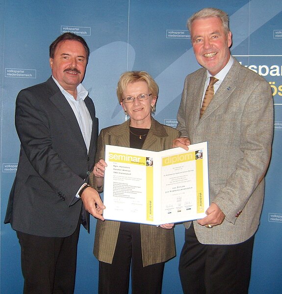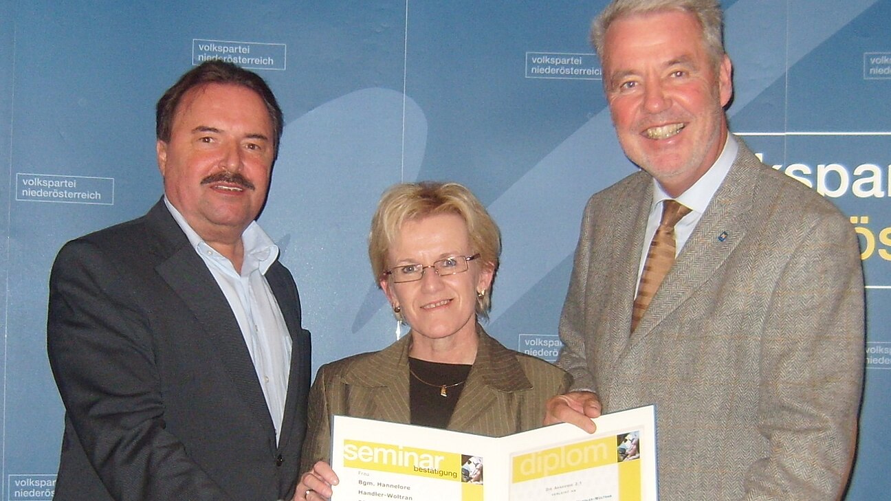 Am Dienstag, 15. Dezember 2008, fand im Haus 2.1 in St. Pölten die Verleihung der Kommunalmanager-Diplome statt. Vom Bezirk Wiener Neustadt wurde die Bürgermeisterin von Katzelsdorf, Hannelore Handler-Woltran, zur Kommunalmanagerin diplomiert. Den 5. Kommunalmanager-Lehrgang, der sich über ein Jahr und zwölf Module erstreckte, belegten neben Bgm. Handler-Woltran sechzehn weitere Kommunalpolitikerinnen und Kommunalpolitiker aus ganz Niederösterreich. Die Abschlussarbeit von Bgm. Handler-Woltran beschäftigte sich mit dem Thema „Radfahren im Ort“. Klubobmann LAbg. Mag. Klaus Schneeberger und Bezirksparteiobmann NR Bgm. Hans Rädler gratulierten der neuen Dipl. Kommunalmanagerin: "Neben Beruf, Familie und dem ständigen Einsatz als Bürgermeisterin, so eine fundierte und intensive Ausbildung zu machen, ist eine tolle Leistung, zu der wir herzlich gratulieren", so Schneeberger und Rädler.