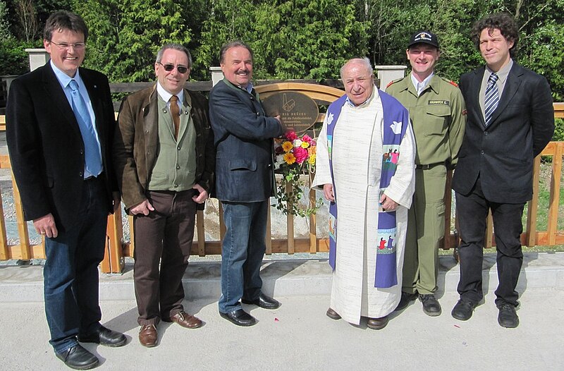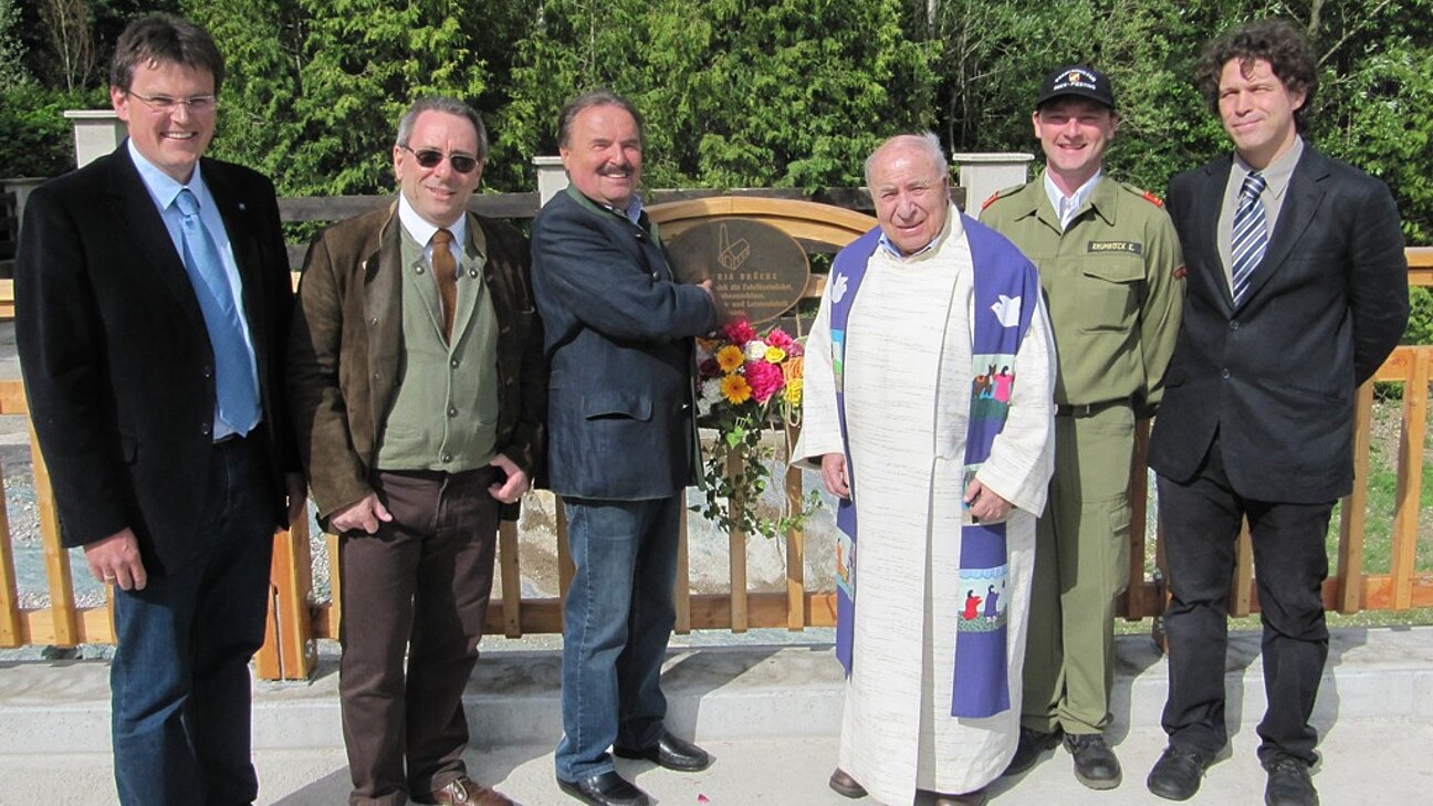 Gestern Samstag wurde das Hochwasserschutzprojekt Ober Piesting in der Gemeinde Waldegg eingeweiht. In Vertretung von Landeshauptmann Dr. Erwin Pröll ist NR Bgm. Hans Rädler zur Segnung gekommen, die durch Pfarrer gR Gerhard Hackl erfolgte. In seiner Ansprache informierte Bürgermeister Michael Zehetner über die Fertigstellung des Hochwasserschutzprojektes, wodurch die Hochwassersituation der Piesting für die Anrainerinnen und Anrainer wesentlich entschärft werden konnte. Nach der „Haas-Brücke“, deren Name an die 1882 bis 1968 existierende Sägemühle der Familie Haas erinnert, folgte der Bau der „Gemeindebrücke“, die an das bis 1970 geöffnete Gemeindeamt der Gemeinde Ober Piesting erinnert. 2010 erfolgte dann die Fertigstellung der „Austria Brücke“, benannt nach der ehemaligen Austria-Leistenfabrik sowie die Fertigstellung der Flutmulde. NR Bgm. Hans Rädler erinnerte in seiner Festansprache an die schweren Hochwasser der Vergangenheit. „Hochwasserschutz ist allen gleichgültig, wenn es kein Hochwasser gibt – aber selbstverständlich, sobald das Hochwasser da ist. Ich freue mich daher, dass es der Gemeinde Waldegg mit Unterstützung von Land und Bund gelungen ist, dieses Hochwasserschutzprojekt fertigzustellen. Gerade im ‚Jahr der Freiwilligen‘ gilt es aber auch jenen zu danken, die dann zur Stelle sind, wenn sie gebraucht werden: die Kameradinnen und Kameraden der Freiwilligen Feuerwehren. An einem Tag wie heute bleibt aber die Hoffnung, dass Schutzmaßnahmen wie diese größere Unglücke in Zukunft verhindern“, so Hans Rädler, der sich als Austria-Wien-Funktionär besonders über die „Austria Brücke“ freute.