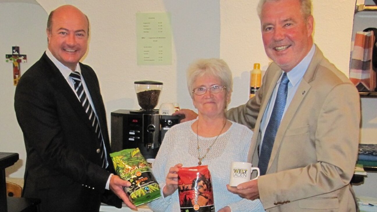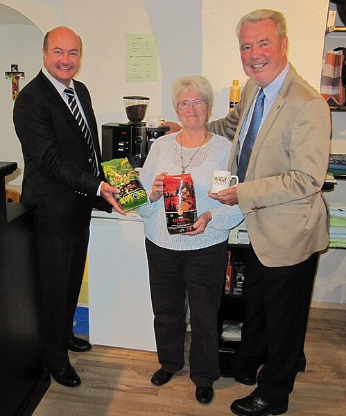 Vor der Gemeinderatswahl haben VPNÖ-Klubobmann LAbg. Klaus Schneeberger und VP-Vizebürgermeister Christian Stocker dem Team des Weltladens eine Kaffeemaschine versprochen. Jetzt wurde dieses Versprechen der beiden Politiker eingelöst. Klaus Schneeberger und Christian Stocker konnten die Firma iura – mit ihrem Sitz in Krumbach – dafür gewinnen, die Kaffeemaschine zur Verfügung zu stellen.