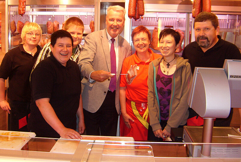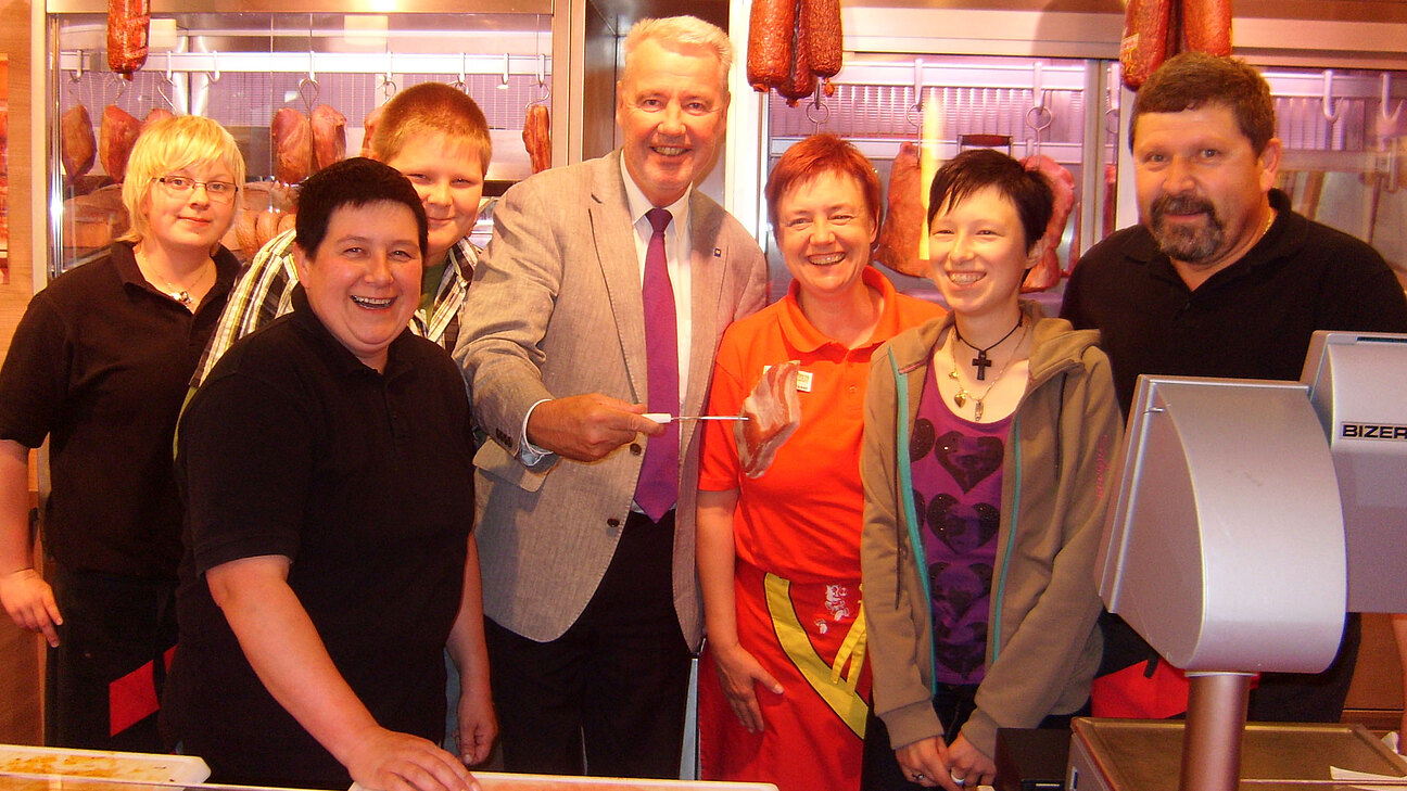 Nach der Kindergarteneröffnung in Sollenau stattete VPNÖ-Klubobmann LAbg. Mag. Klaus Schneeberger der Fleischerei Steiner-Bernscherer einen Überraschungsbesuch ab. „Hier her zu kommen, ist ein Besuch bei Freunden. Mit der Familie Steiner-Bernscherer habe ich schon lange Zeit engen Kontakt. Deshalb freut es mich ganz besonders, dass es sich heute ausgegangen ist, vorbeizuschauen. Es tut gut zu sehen, wie erfolgreich dieser Familienbetrieb arbeitet und tagtäglich höchste Qualität für Sollenau und die Region produziert“, so Klaus Schneeberger.