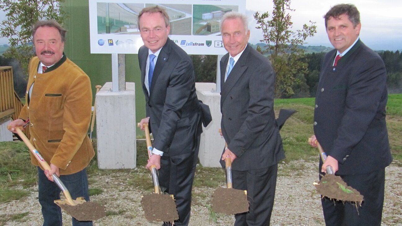 Die Gemeinde Lichtenegg hat sich seit Jahren der alternativen Energie verschrieben. Jetzt bekommt das einzige Windrad der Buckligen Welt Gesellschaft. Gestern Donnerstag erfolgte durch Umweltlandesrat Dr. Stephan Pernkopf, EVN-Generaldirektor Dr. Burkhard Hofer und Bürgermeister LAbg. Ing. Franz Rennhofer der Spatenstich für einen Windkraftpark. „Nirgend wo in ganz Österreich gibt es etwas Vergleichbares zu diesem Windkraftpark. Ich freue mich, dass wir mit der EVN einen starken und verlässlichen Partner für dieses Projekt gefunden haben. Der Boden für ein Windkraftprojekt ist in Lichtenegg auch ein denkbar guter. Immerhin hat es das erste Windrad bereits 1922 gegeben. Doch zurück in der Gegenwart bedanke mich bei allen Firmen, Anrainern und Grundstückseigentümern, die dieses Projekt erst möglich machen“, so Bgm. Franz Rennhofer. „Was würde besser zu Lichtenegg und zu diesem Projekt passen, als das Sprichwort ‚Wenn der Wind des Wandels weht, bauen die einen Mauern, die anderen Windmühlen.‘ Gerade aktuelle Ereignisse, wie die Katastrophe im Golf von Mexiko, beweisen die Richtigkeit unseres blau-gelben Weges hin zu mehr erneuerbarer Energie. Unser Ziel ist es bis 2015 100 Prozent des Stroms und bis 2020 50 Prozent der Gesamtenergie aus alternativen Energien zu gewinnen. Um diese Ziele zu erreichen brauchen wir starke Partner, wie die EVN und die Gemeinden. Gerade dieses Projekt bedeutet dabei einen Meilenstein in der Weiterentwicklung der Windkraft“, so LR Stephan Pernkopf. Im Windkraftpark Lichtenegg werden zehn Kleinwindräder verschiedener Arten und verschiedener Hersteller errichtet, um diese zu testen. Gleichzeitig werden innovative Speichertechniken verbunden mit einer Photovoltaikanlage installiert.
