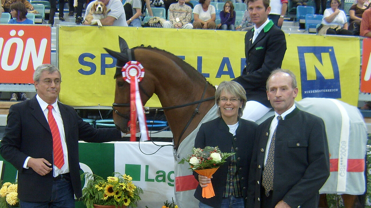 Landesrätin Dr. Petra Bohuslav überreichte heute den Großen Preis des Landes Niederösterreichs beim CSI 2009 in der Arena Nova. Sieger wurde mit vier Hundertstel Vorsprung Beat Mändli (mit Queensland) aus der Schweiz, vor Christian Fries (mit Lanco) aus Österreich und Suzanne Tepper (mit Sensation) aus den Niederlanden.