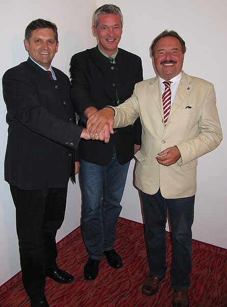 Im November 2010 wird beim Bezirkstag des VP-Gemeindevertreterverbandes im Bezirk Wiener Neustadt der Vorstand neu gewählt. Bei einer Vorstandssitzung diese Woche wurden dafür die personellen Weichenstellungen vorgenommen. LAbg. Bgm. Ing. Franz Rennhofer wird nicht mehr für die Funktion des Bezirksobmannes kandidieren. Roland Weber, der Bürgermeister der Gemeinde Wiesmath, wurde als sein Nachfolger nominiert. „Nach acht Jahren ist für mich ein guter Zeitpunkt die Leitung des GVV im Bezirk abzugeben. Einerseits, weil ich als Bürgermeister von Lichtenegg, Landtagsabgeordneter und AAB-Bezirksobmann genug ausgelastet bin. Andererseits, weil wir in unserer Partei immer wieder Erneuerung brauchen und Erneuerung wollen. Ich wünsche Roland Weber für seine Wahl im November alles Gute und freue mich auf eine erfolgreiche Arbeit im Bezirksvorstand, dem ich auch weiterhin angehören werde“, so Franz Rennhofer. „Gerade in Zeiten wie diesen sehen wir, wie wichtig eine starke Vertretung für die Gemeinden ist. Die Herausforderungen vor denen wir stehen, stärken aber auch einmal mehr die Achse zwischen dem Land Niederösterreich und den Gemeinden. Wir werden uns – auch in finanziell angespannten Zeiten – von nichts und niemandem auseinanderdividieren lassen, weil diese Achse wichtig für die Entwicklung unserer Gemeinden ist. Ich sehe mich deshalb als Ansprechpartner für die Gemeinden im Bezirk und als Anwalt unserer Gemeinden im Land“, so der designierte GVV-Bezirksobmann Bgm. Roland Weber. Bezirksparteiobmann NR Bgm. Hans Rädler gratuliert dem designierten GVV-Bezirksobmann. „Für uns war Roland Weber ganz klar die erste Wahl. Er ist ein Bürgermeister mit viel Erfahrung und Erfolg. Er hat in der Vergangenheit bewiesen, dass er sich für die Anliegen der Gemeinden stark macht und er ist ein Zeichen der Erneuerung in der Führung der Volkspartei im Bezirk Wiener Neustadt. Ich freue mich über seine Nominierung und auf eine erfolgreiche Zusammenarbeit“, so Hans Rädler.