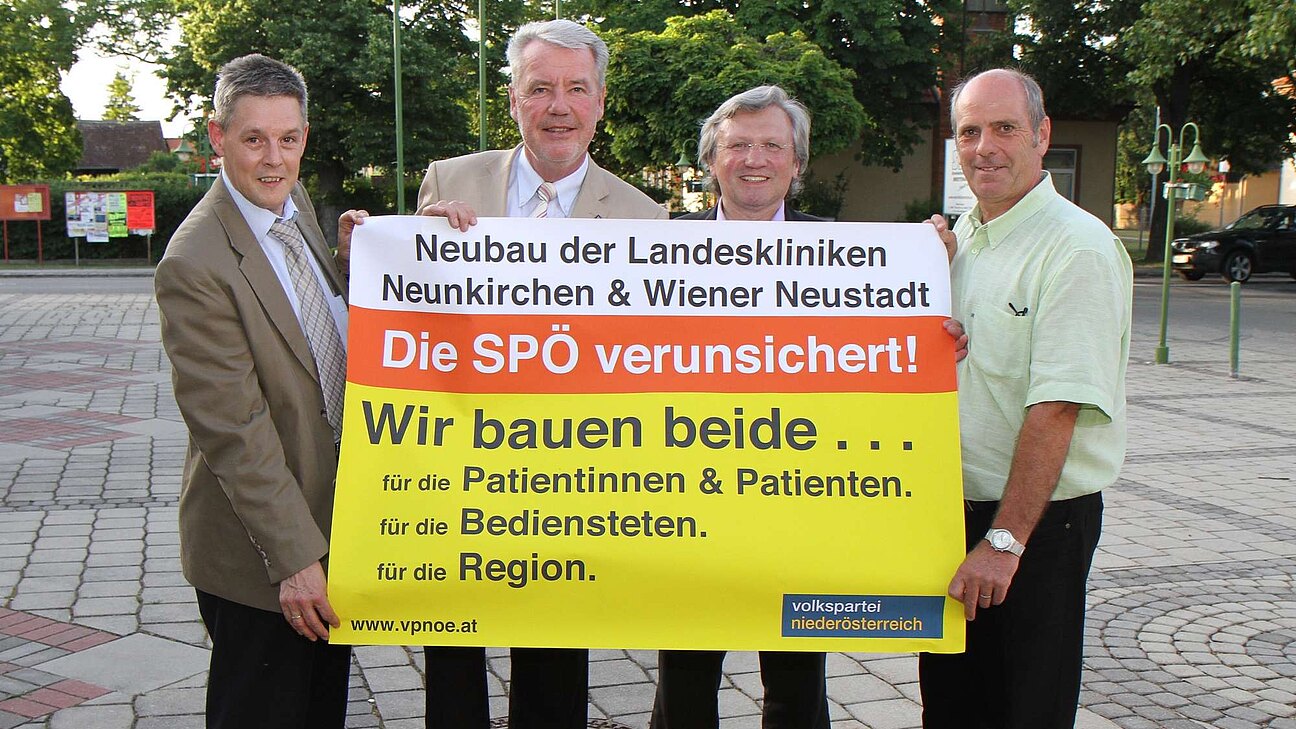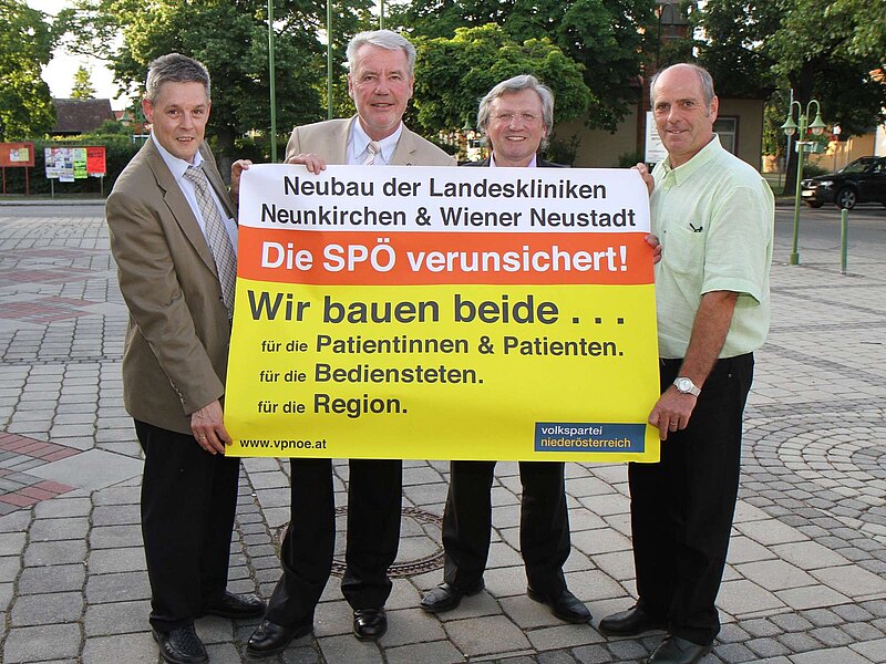 „Das Zusperren von Spitälern mit weniger als 300 Betten würde in unserer Region den Standort Hochegg betreffen. Wir werden diesen Anschlag auf die Gesundheitsversorgung in Niederösterreich und damit auf die Menschen in unserer Region sicher nicht zulassen“, kritisieren VP NÖ-Klubobmann LAbg. Mag. Klaus Schneeberger und LAbg. Hermann Hauer die Krankenhaus-Schließungspläne der SPÖ auf das Allerschärfste. In diesem Zusammenhang reagieren der Klubobmann und Hauer auch auf die immer wieder aufflammende Kritik – zuletzt laut Auskunft der NÖN von SPÖ-Nationalrat Wittmann – am Neubau der beiden Landeskliniken Wiener Neustadt und Neunkirchen. „Wir stehen dazu, dass wir sowohl in Wiener Neustadt als auch in Neunkirchen die Landeskliniken neu bauen und nicht – wie von vielen gefordert– eines der beiden Häuser schließen“, so Klaus Schneeberger und Hermann Hauer Die Gründe dafür liegen für den Klubobmann auf der Hand: „Erstens können wir nur so die gesetzlichen Vorgaben für die Erreichbarkeit von Krankenhäusern (für Akutspitäler ist eine Erreichbarkeit für 90 Prozent der Bevölkerung innerhalb von 30 Minuten vorgeschrieben) einhalten. Zweitens ist der Schaden für die Region, für die Zulieferbetriebe und damit für die Beschäftigten, nicht zu verantworten. Drittens kann – in wirtschaftlich schwierigen Zeiten – mit diesen Investitionen Wertschöpfung generiert werden, was sich wiederum positiv auf die Regionalwirtschaft und damit auf die Arbeitsplätze in der Region auswirkt“, erklären Schneeberger und Hauer. Das Regionalmanagement der Landeskliniken-Holding arbeitet gerade auf Hochtouren, um sämtliche Einsparungspotenziale beim Neubau der beiden Häuser zu berücksichtigen. „Für uns gibt es in der Neubau-Frage nicht schwarz oder weiß, sondern nur den blau-gelben Weg unserer Gesundheitspolitik. Dieser blau-gelbe Weg bedeutet, dass alle Standorte erhalten bleiben und es zu einer Spezialisierung der einzelnen Häuser kommt. Gleichzeitig werden alle darüber hinaus gehenden Einsparungspotenziale – die erst durch unseren großen Krankenanstaltenbund ermöglicht wurden – ausgeschöpft. Außerdem werden am Standort Wiener Neustadt sämtliche Synergieeffekte, die mit dem Bau von MedAustron verbunden sind, ausgenutzt“, so Schneeberger. Die Diskussionen der letzten Tage und die Vorschläge des Herrn Wittmann hält der Klubobmann für entbehrlich. „Die Pläne der SPÖ sind der nächste Anschlag der SPÖ auf den ländlichen Raum und auf die Gesundheitsversorgung in Niederösterreich. Gerade in Zeiten in denen gespart werden muss, darf man die Bevölkerung nicht verunsichern. Wer gegen den Neubau der beiden Standorte auftritt, gefährdet die Gesundheitsversorgung, gefährdet die Klein- und Mittelbetriebe und gefährdet hunderte Arbeitsplätze in unserer Region. Daher kommt für uns die Schließung eines einzigen Standorts nicht in Frage. Wir werden die Gesundheitsversorgung für die Menschen in unserer Region auf höchstem Niveau weiter ausbauen und alle Krankenhausstandorte im Sinne der Niederösterreicherinnen und Niederösterreicher erhalten“, betonen der Klubobmann Schneeberger und Abgeordneter Hauer abschließend.