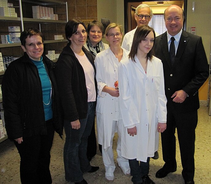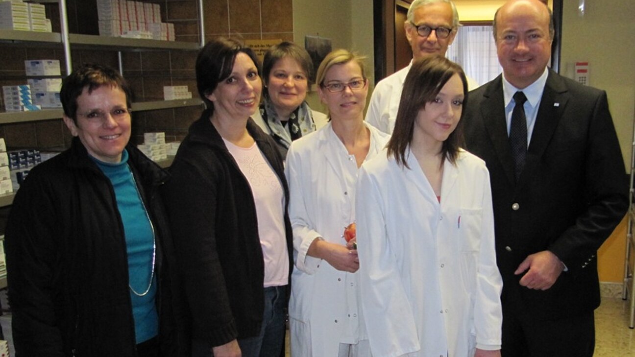 Vizebürgermeister Christian Stocker besuchte das Landesklinikum Wiener Neustadt und brachte den Bediensteten eine gesunde Jause in Form von Äpfeln mit. Bei dieser Gelegenheit stattete der Vizebürgermeister auch der hauseigenen Apotheke einen Besuch ab um den neusten Lehrling – Nicol Emmer – herzlich im Landesklinikum zu begrüßen.