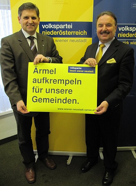 In einem Pressegespräch am heutigen Freitag informierten VP-Bezirksparteiobmann NR Bgm. Hans Rädler und GVV-Obmann LAbg. Bgm. Ing. Franz Rennhofer über die Entwicklung des Bezirks in der auslaufenden Gemeindewahlenperiode und zeigten sich zuversichtlich für die Gemeindewahlen im März 2010. GVV-Obmann Franz Rennhofer verwies auf die Projekte, die die Region heute schon prägen und auch in Zukunft prägen werden, wie den Neubau des Landesklinikums, MedAustron, die Forschungsprojekte am Technopol, die Therme Linsberg Asia, die „Betreutes Wohnen“-Projekte, die Kindergarten-Ausbauten, die Erweiterung des Kurzentrums in Bad Schönau, die Waldbühne Bromberg, die Festspiele Gutenstein, der Rundwanderweg bei den Myrafällen oder der Skywalk auf der Hohen Wand. „Egal um welches Projekt es sich handelt, es steckt die konsequente Arbeit der Volkspartei in den Gemeinden dahinter. Alle diese Projekte sind Beispiele für den blau-gelben Weg, den wir gemeinsam mit unserem Landeshauptmann Erwin Pröll gegangen sind und den wir auch in Zukunft gemeinsam gehen werden. Dieser Weg hat unserer Region der rauchenden Schlote, eine Region der rauchenden Köpfe gemacht“, so Rennhofer. Rennhofer erinnerte in diesem Zusammenhang auch an die großen Herausforderungen im abgelaufenen Jahr. „Sei es der beabsichtigte CERN-Ausstieg von Minister Hahn, der MedAustron gefährdet hätte oder die Unwetterkatastrophe vom Juni, die vor allem Klingfurth so stark betroffen hat oder seien es die wirtschaftlich schwierigen Zeiten. Die Volkspartei Niederösterreich – vom Landeshauptmann bis zu den Funktionärinnen und Funktionären in den Gemeinden – hat gemeinsam Probleme gelöst und Menschen geholfen“, so Rennhofer. Bezirksparteiobmann Hans Rädler hob das persönliche Engagement der Gemeinderätinnen und Gemeinderäte in den letzten fünf Jahren hervor, das die vielen Projekte erst möglich machte. „Der 14. März 2010 wird Zahltag in jeder Gemeinde sein. Die Bürgerinnen und Bürger entscheiden dabei über ihre Zukunft in den nächsten fünf Jahren. Für uns als Volkspartei geht es dabei nicht um Ideologie, ganz im Gegenteil. Wir als Volkspartei machen Politik für den Bürger statt Politik für die Ideologie. Auch das wird ein Grund dafür sein, warum die SPÖ in den vergangenen 35 Jahren acht Bürgermeister verloren hat, die Volkspartei hingegen keinen“, so Rädler. Rädler erinnerte auch an die zahlreichen Initiativen, die die Bezirkspartei im Vorjahr gesetzt hat. „Wer Volkspartei wählt, hat einen starken Partner, das Land Niederösterreich, mit im Boot. Diese starke Achse haben wir im Vorjahr mit der Plakatserie ‚Niederösterreich investiert. Unsere Gemeinde profitiert.’ veranschaulicht. Nächste Woche werden wir die nächste Plakatwelle mit ‚Ärmel aufkrempeln für unsere Gemeinde’ starten. Aber auch im Jugendbereich haben wir Akzente gesetzt. Ich freue mich sehr, dass es gelungen ist viele neue JVP-Gruppen zu gründen, wie zum Beispiel im Oberen Piestingtal oder in Lanzenkirchen. Wenn junge Leute mitbestimmen wollen, müssen sie sich einbringen. Unsere Aufgabe ist es, jungen Menschen das zu ermöglichen“, betonte Rädler. Die Ziele der Volkspartei für die Gemeindewahlen haben Rädler und Rennhofer definiert. „Unser Landeshauptmann Erwin Pröll hat uns den Weg vorgezeigt und uns die Latte hoch gelegt. Er ist das Vorbild für erfolgreiche Politik und für schlagkräftige Wahlkämpfe. Immerhin war die SPÖ bei der Landtagswahl nur mehr in zwei Gemeinden im Bezirk vorne. Unser Ziel als Volkspartei ist daher klar: alle Bürgermeister halten und in den Minderheitsgemeinden stärker werden. Die Voraussetzungen dafür sind gut, denn keine andere Partei als die Volkspartei kann so eine positive politische Bilanz vorweisen und Visionen für die nächsten Jahre präsentieren“, so Rädler und Rennhofer abschließend.