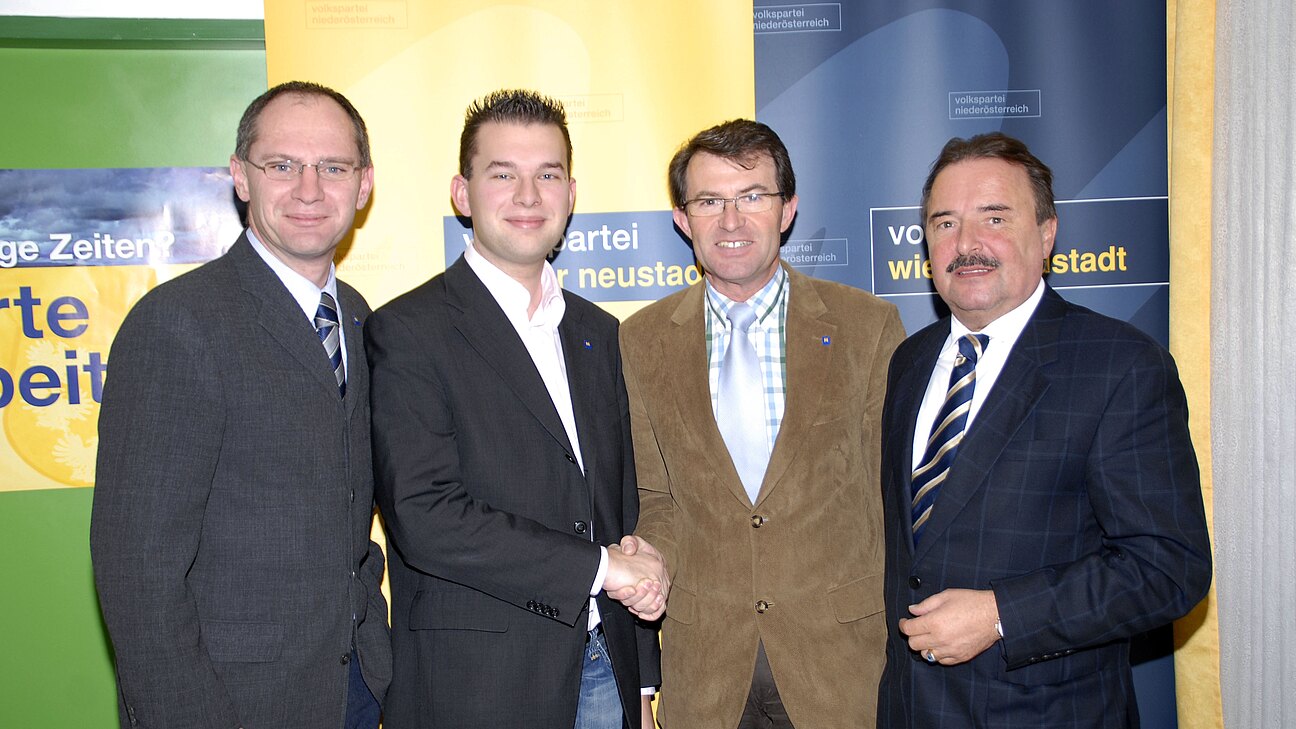 Am Freitag, 21. November 2008 präsentierten Landesgeschäftsführer LAbg. Mag. Gerhard Karner und Bezirksparteiobmann NR Bgm. Hans Rädler den neuen Bezirksgeschäftsführer der Volkspartei in Wiener Neustadt, Matthias Zauner. Nach sieben Jahren wird GR Franz Piribauer mit Jahreswechsel als Landesgeschäftsführer des NÖ-AAB nach St. Pölten wechseln. Seit drei Wochen läuft die Übergabephase in der Bezirksgeschäftsstelle. Eine Entwicklung, die LGF Karner und BPO Rädler mit „einem lachenden und einem weinenden Auge“ sehen. „Auf der einen Seite verliert die Landespartei mit Franz Piribauer einen wichtigen strategischen Kopf, der im Sinne des Bezirks und des Landes hervorragende Arbeit geleistet hat. Dafür ein herzliches Danke und Gratulation zur neuen Aufgabe. Auf der anderen Seite bekommen wir mit Matthias Zauner einen jungen, engagierten Bezirksgeschäftsführer, auf den mit der Gemeinderatswahl 2010 eine große Aufgabe zukommt, wofür ich ihm alles Gute wünsche“, so Karner.