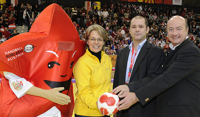 Unser Handball Nationalteam wärmt in Wr. Neustadt für EM 2010 auf: LR Petra Bohuslav und…